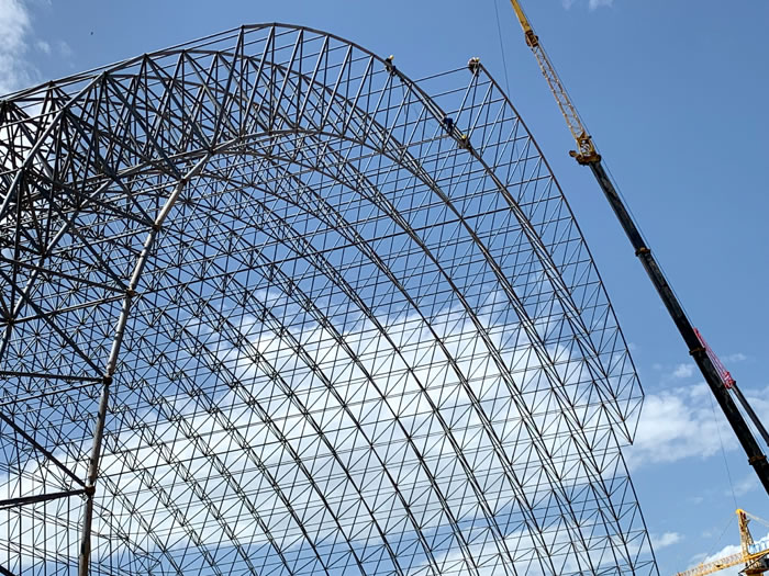 (2)网架加工前应对现场尺寸进行复测,确认无误后方可进行加工、安装;网架制作、运输、安装应遵守《空间网格结构技术规程》JGJ7-2010、《钢网架太仓螺栓球节点》JG/T 10-2009、《钢网架太仓螺栓球节点用高强度螺栓》 GB/T 16939-2016、《太仓钢结构太仓工程太仓施工规范》 GB50755-2012、《太仓钢结构太仓工程施工质量验收标准》 GB50205-2020。